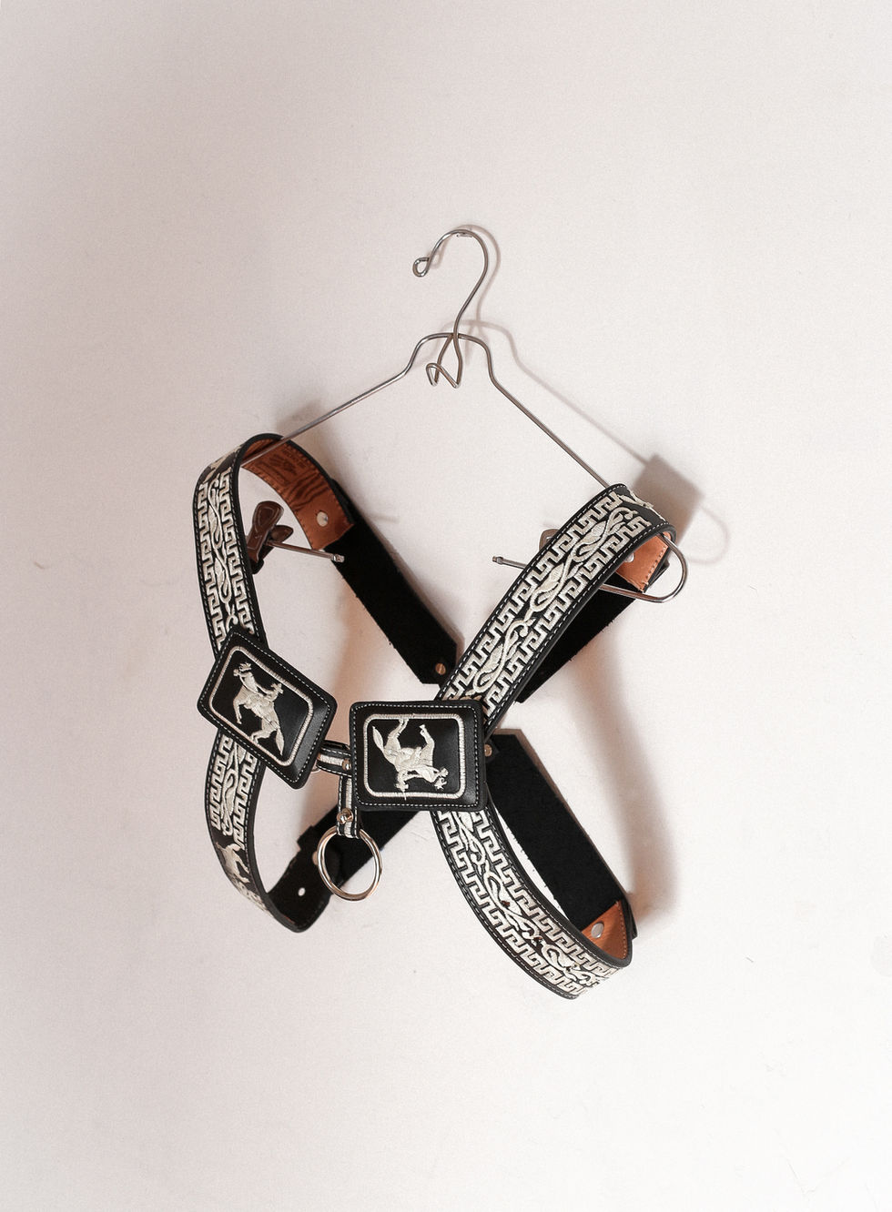 Esta serie interpela las convenciones de la masculinidad a través de la incorporación de indumentaria de vaqueta y cintos piteados, transformando este objeto asociado al imaginario del “macho” en una declaración visual de disidencia como accesorio erotico en la cultura queer, estas piezas subrayan una narrativa liberada de imposiciones sociales. La transformación del tradicional cinto piteado—símbolo de poder, virilidad y pertenencia regional— en un arnés o suspensorio se convierte aquí en un gesto de despojo deliberado, que insinúa la desnudez, desarmando la noción de vulnerabilidad. La obra desestabiliza los códigos tradicionales del género, proponiendo una masculinidad que no necesita afirmarse desde la rigidez, sino que encuentra fuerza en la contradicción y el cuerpo que se libera de expectativas impuestas. Las obras se instalan como símbolo de una fortaleza resignificada, donde lo íntimo y lo simbólico se entrelazan para confrontar los estigmas del machismo desde el lenguaje de lo material.